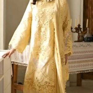 yellow color 3piece suite with lace cutwork for women (size:L).